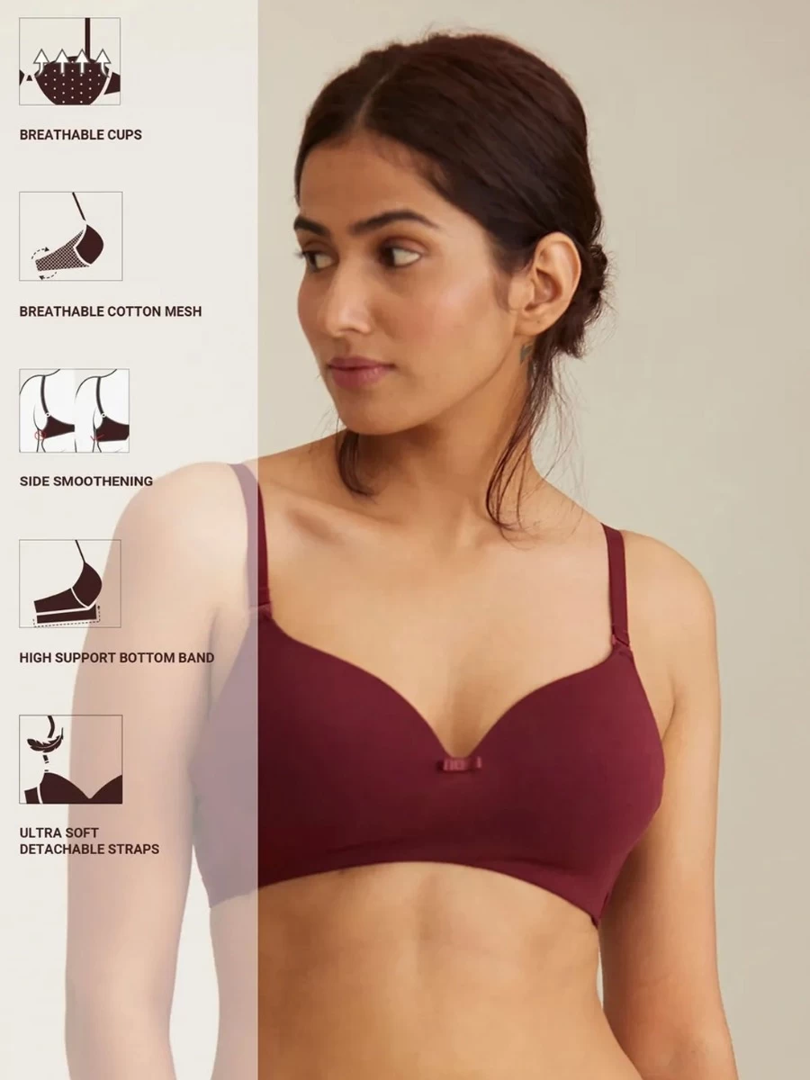 » Nykaa Zinfandel Maroon Cotton Seamless Wirefree T shirt Bra