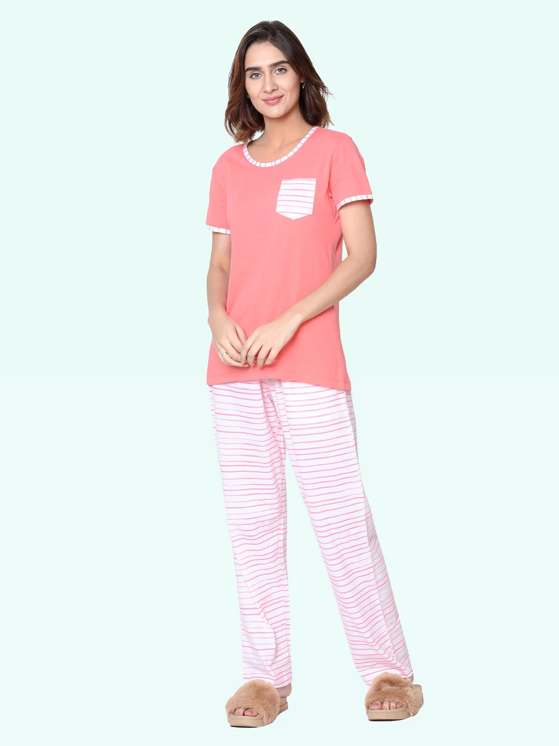 Shyaway Coral Stripe Print Nightwear Pyjama Set