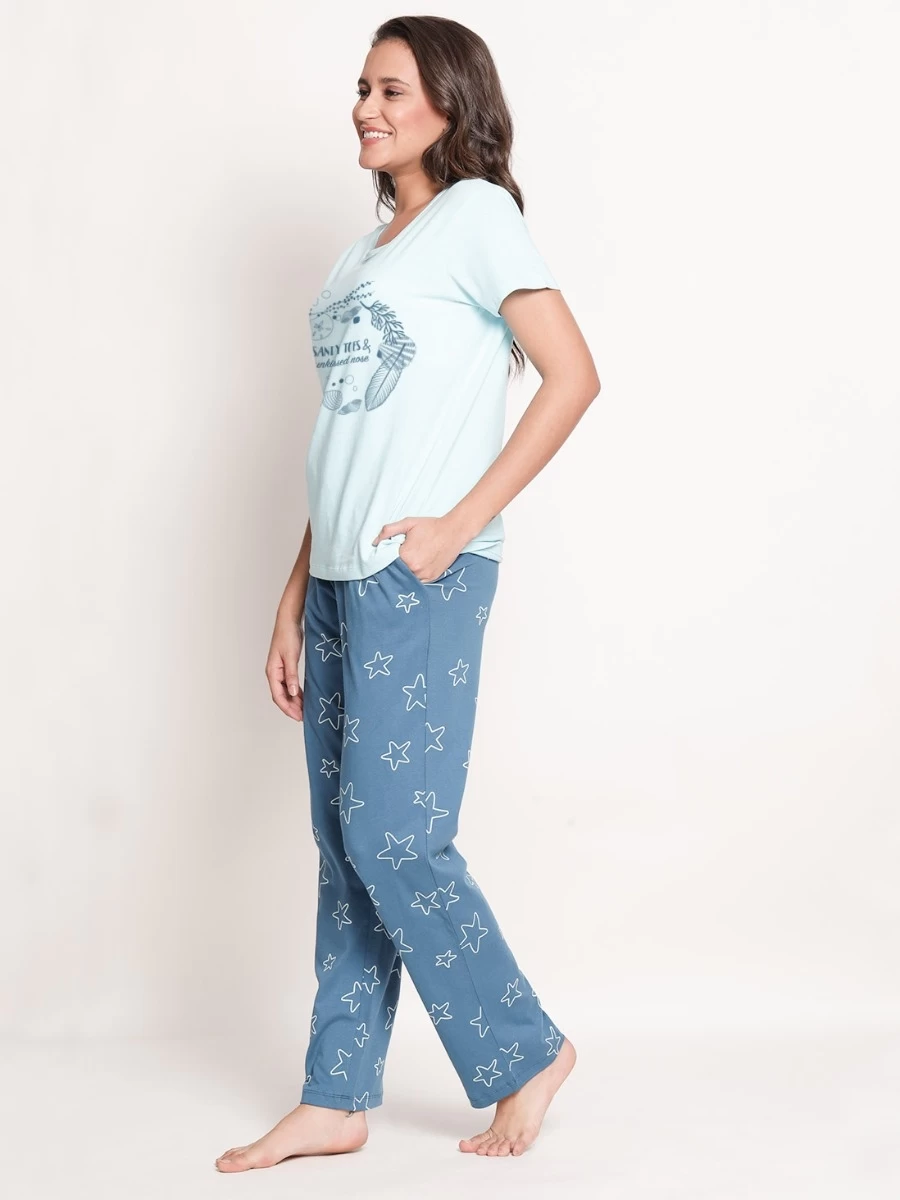 Shyaway DeepLagoon Blue Starfish Printed Pyjama Set