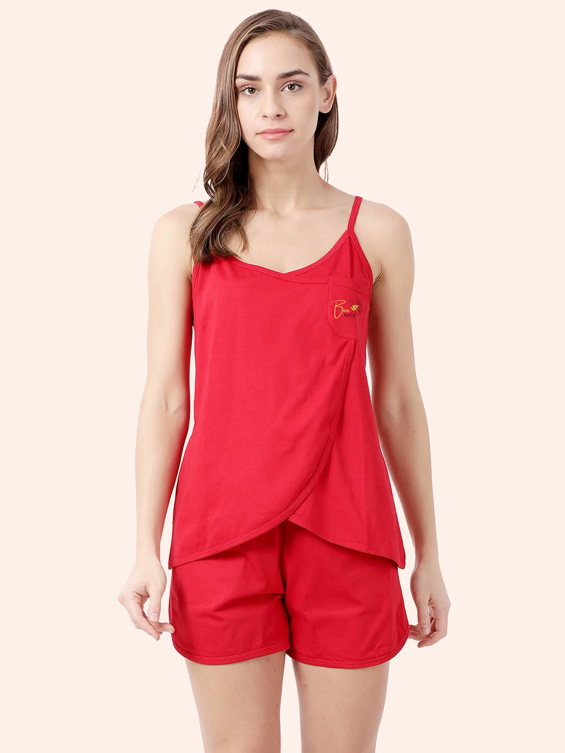Shyaway Fiery Red Bee Print Spaghetti Shorts Set