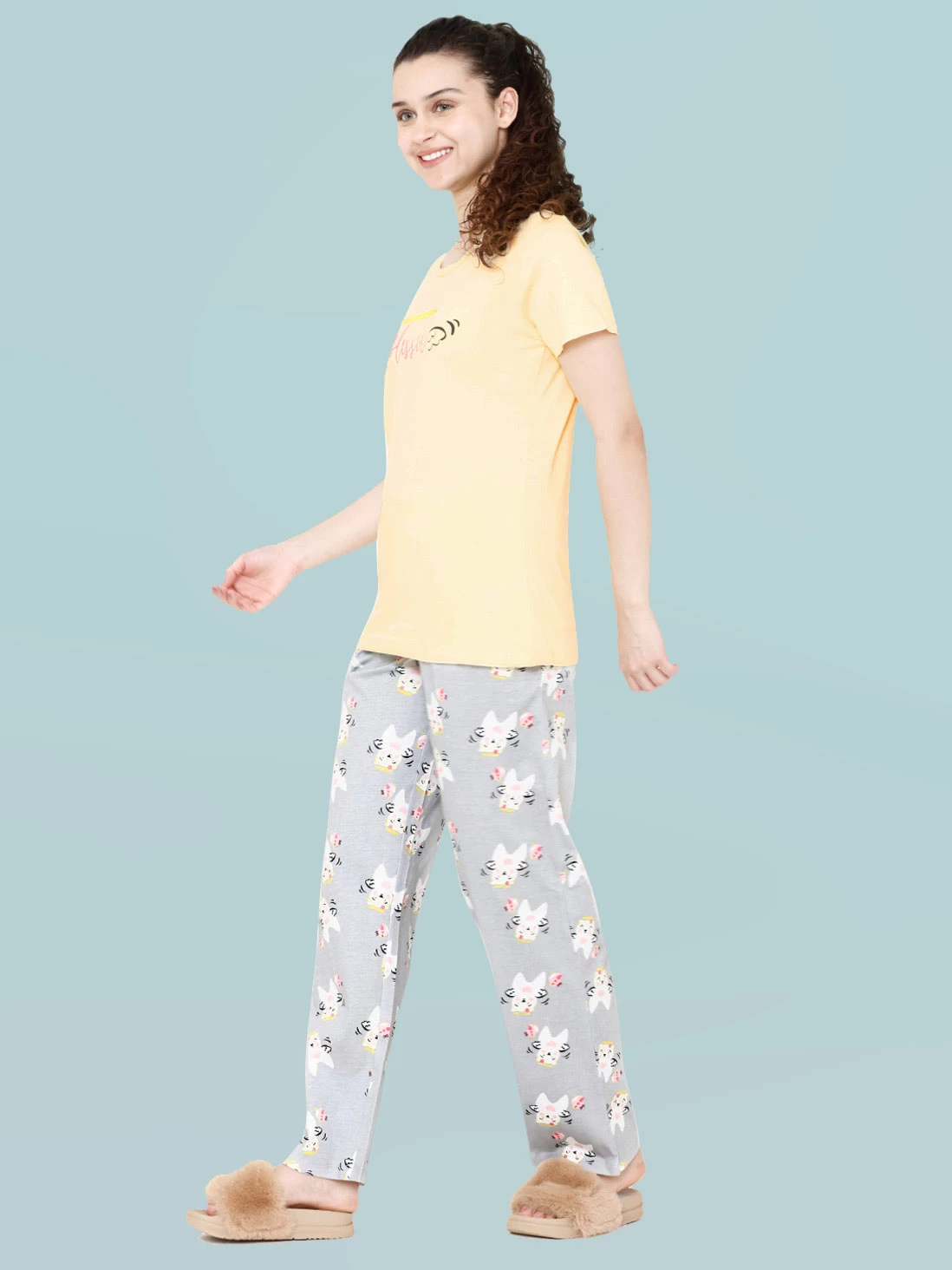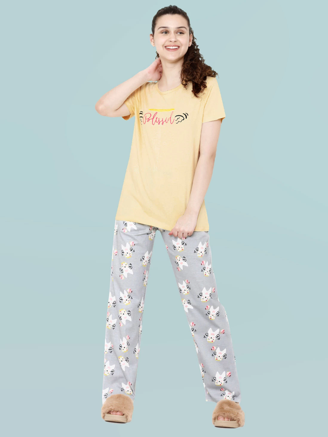 Shyaway’s Grey Yellow Blessed Print Nightwear Pyjama Set