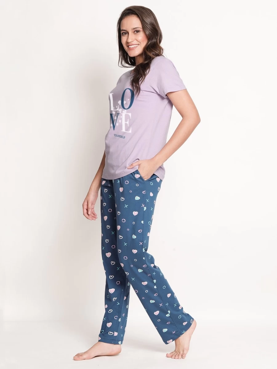 Shyaway Lavender Blue Heart Printed Pyjama Set