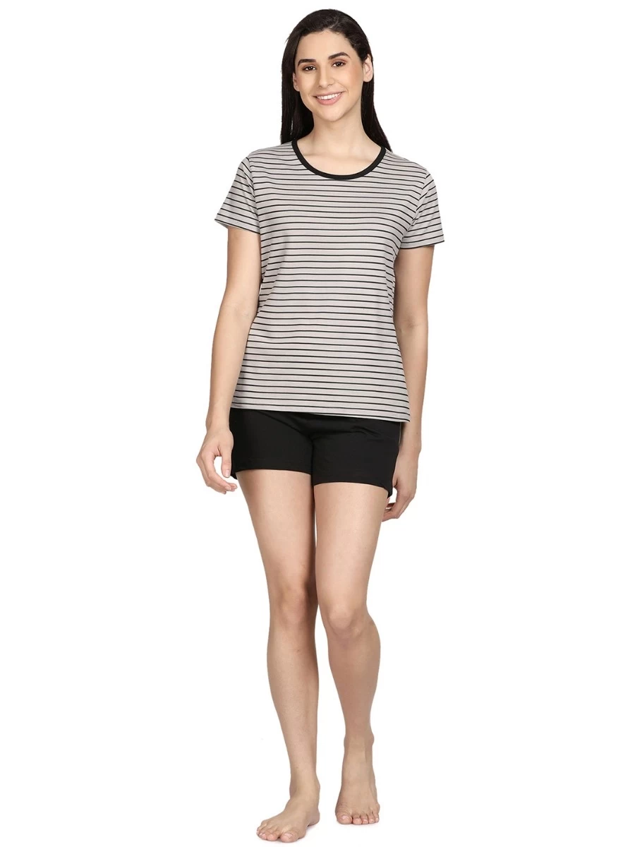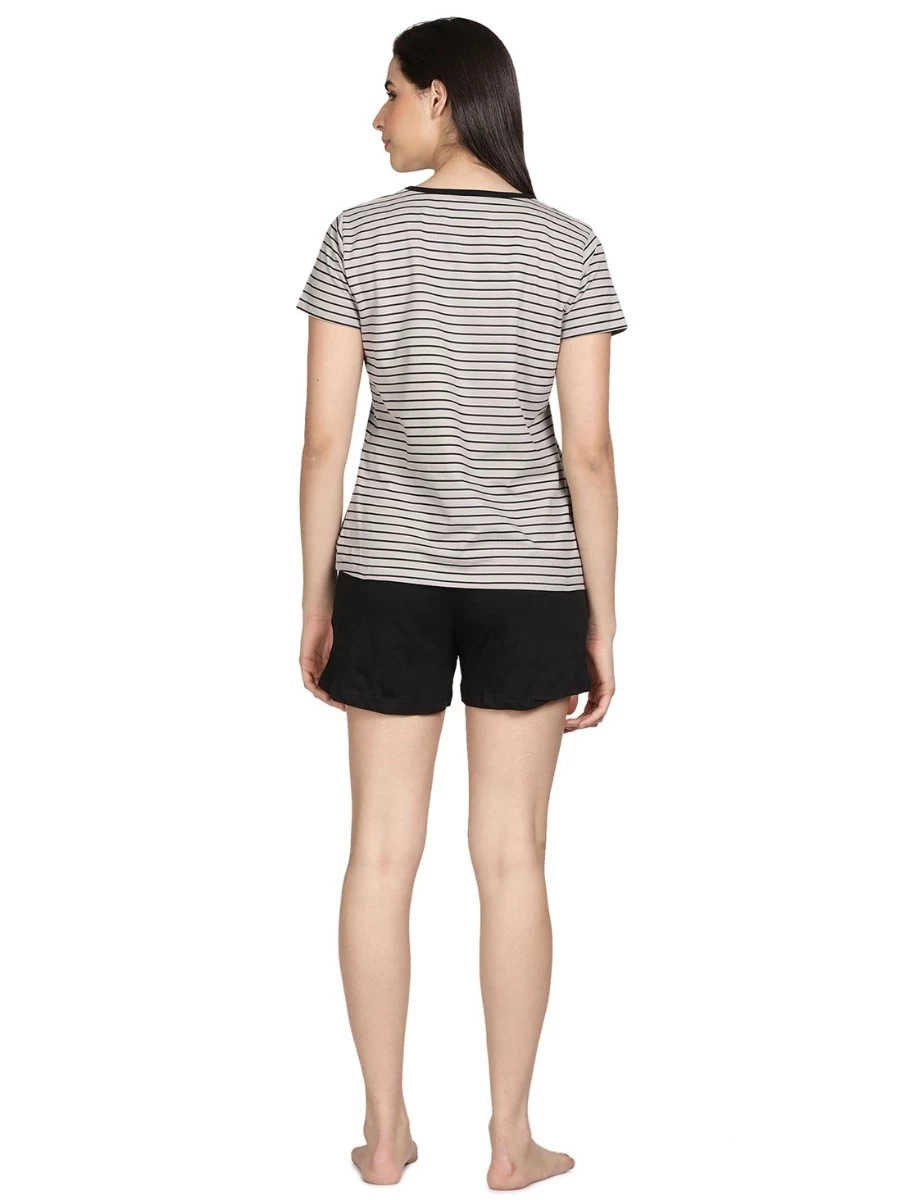 Shyaway Monument Grey Stripe Printed Shorts Set