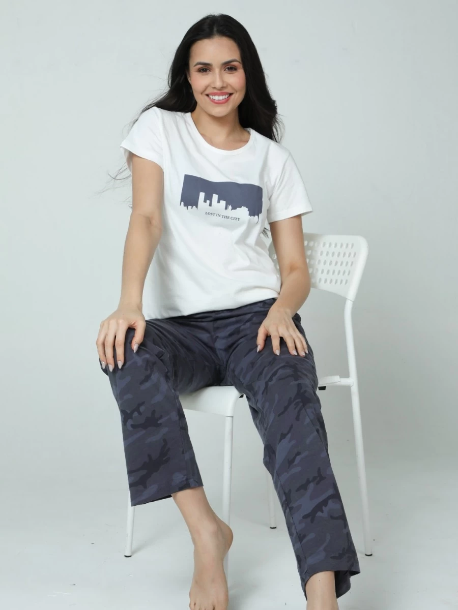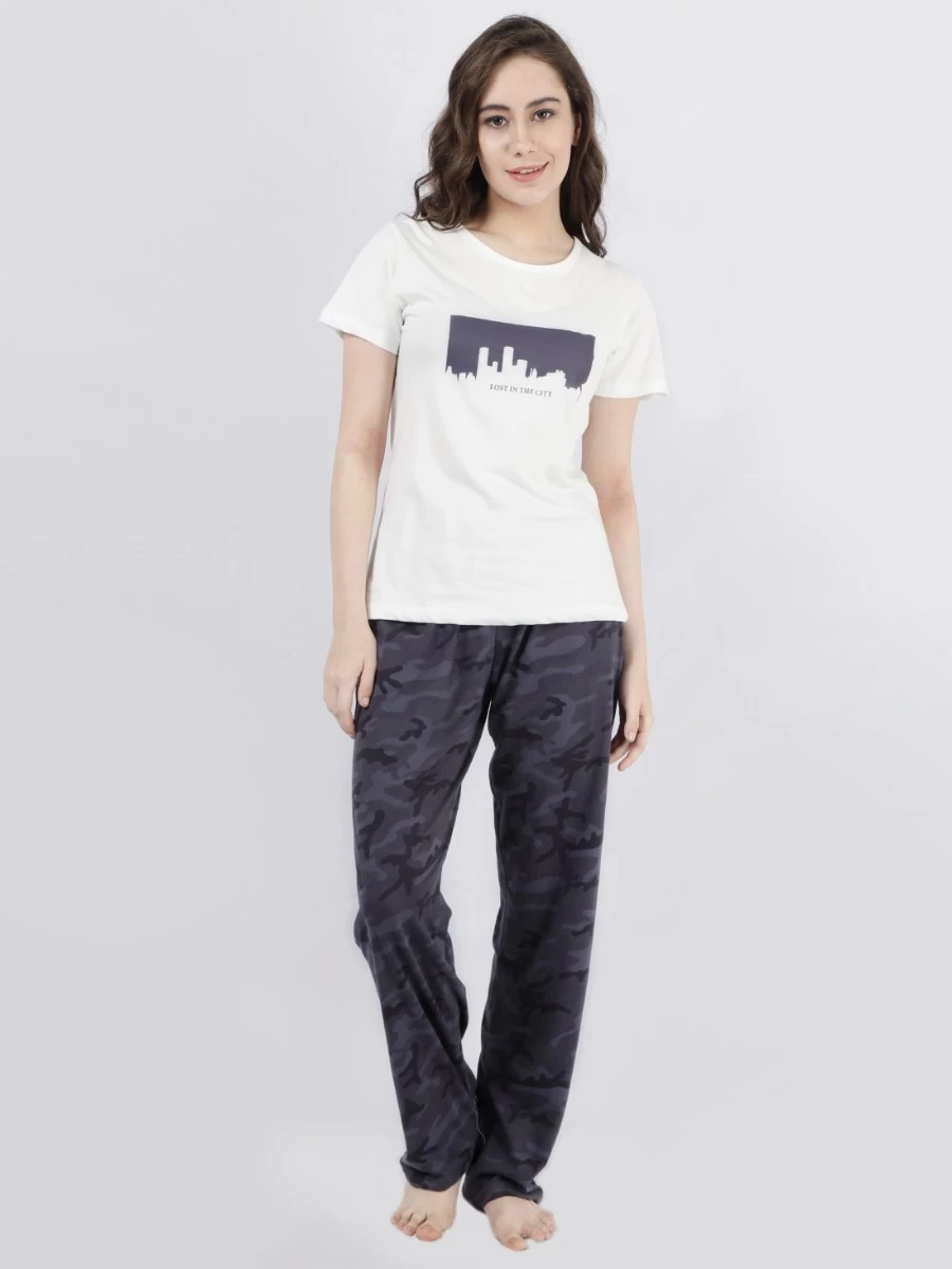 Shyaway Stormfront Grey Camouflage Printed Pyjama Set