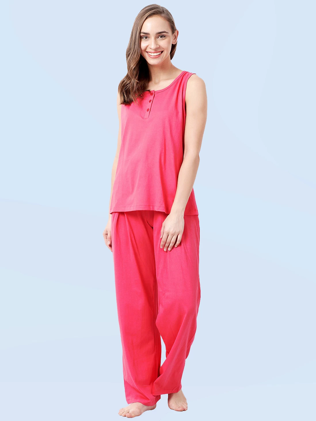Shyaway Sugar Coral Solid Sleeveless Pyjama Set