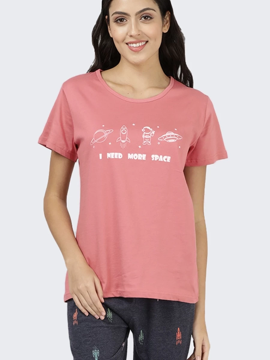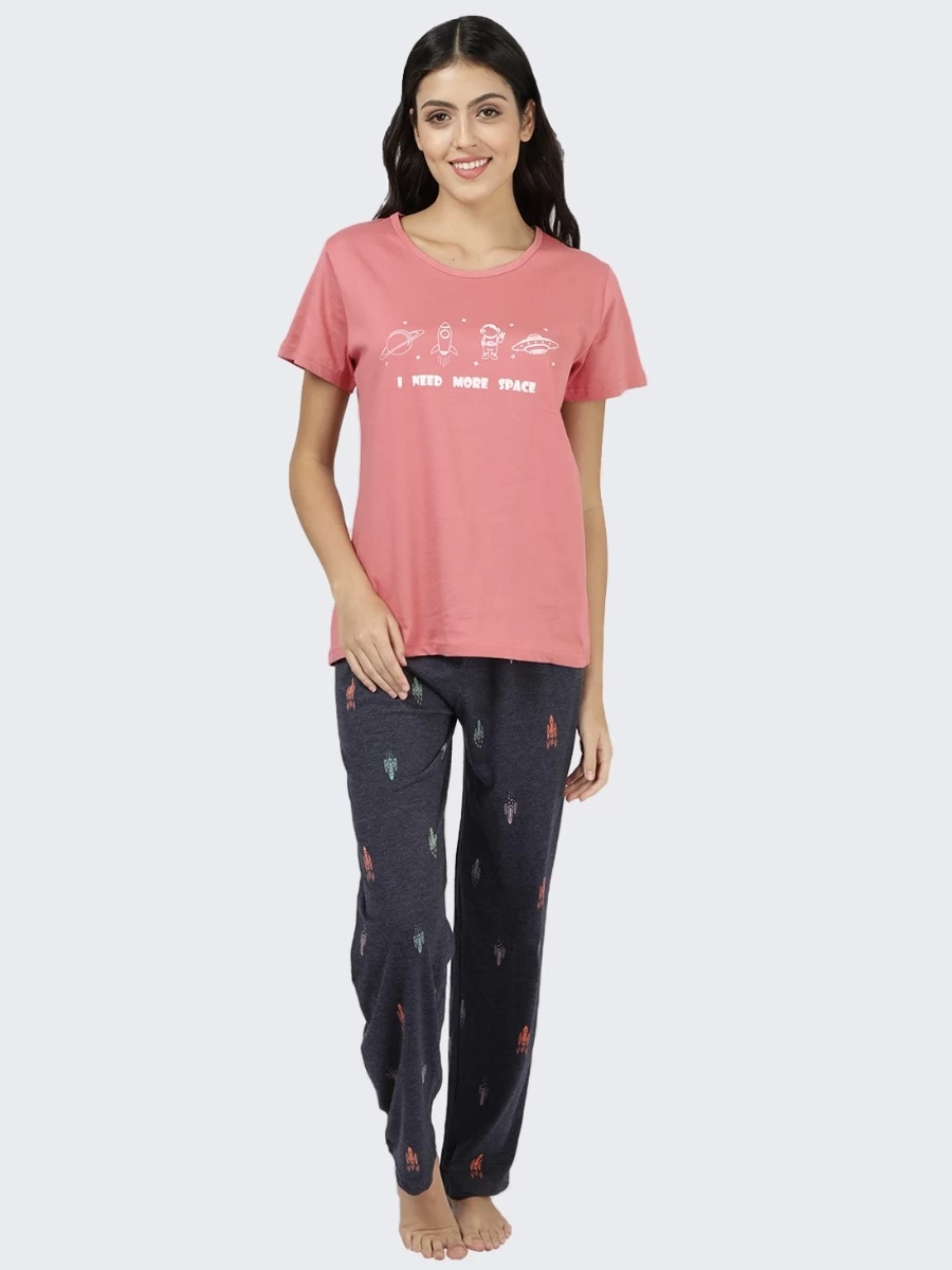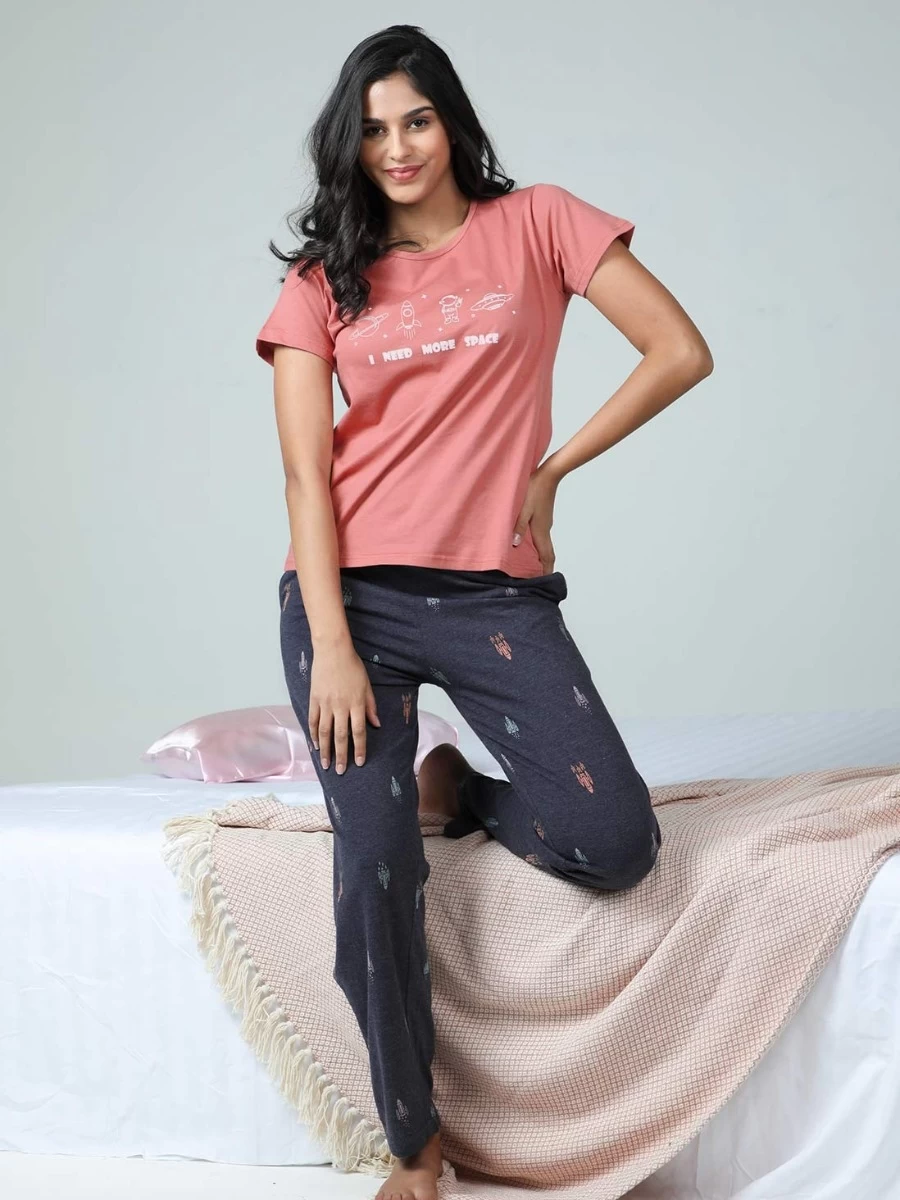 Shyaway Sugar Coral Pink Space Printed Pyjama Set