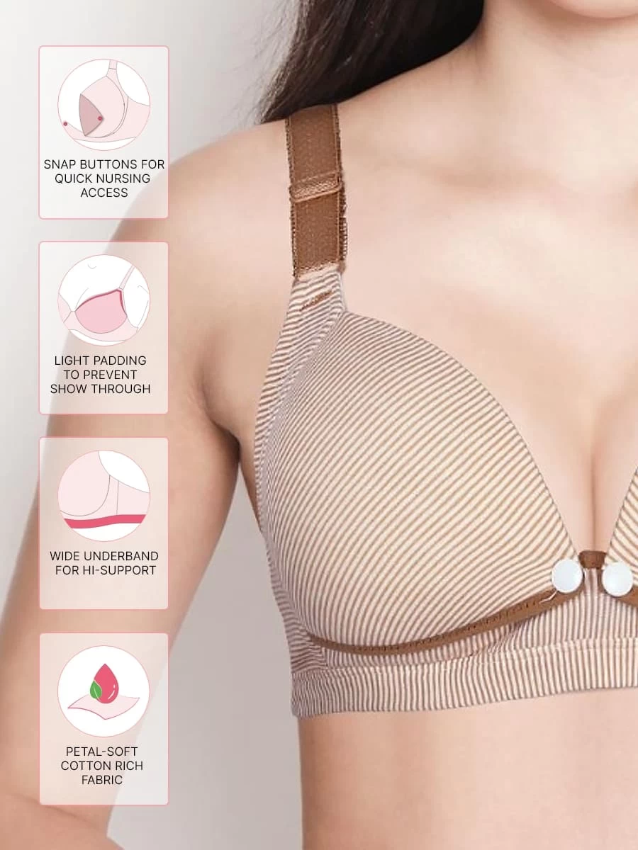 Shyle Brown Stripe Print Cotton Nursing Bra
