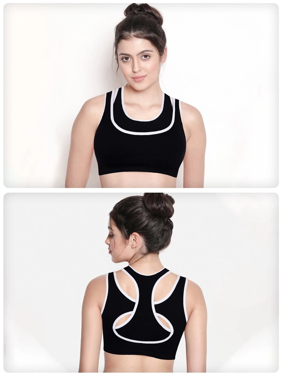 Shyle Jet Black Pull Over Racer Back Sports Bra