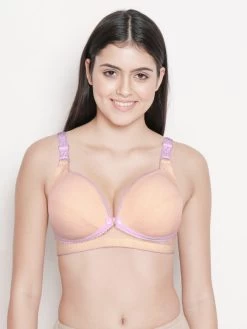 Shyle Light Orange With Lilac Straps Nursing Bra