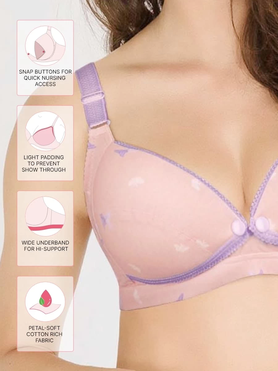 Shyle Peach Lavender Butterfly Print Cotton Nursing Bra