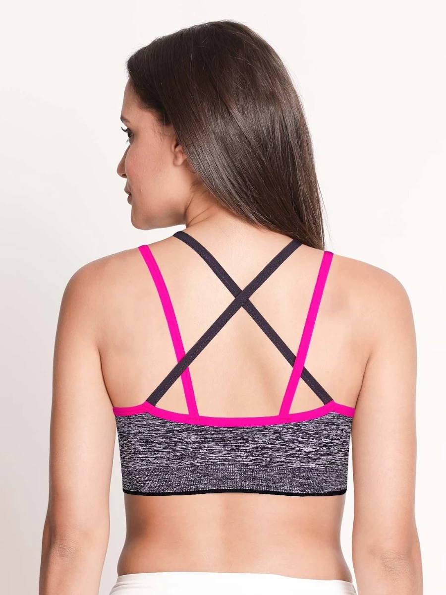 Shyle Pink Grey Horizontal Chaotic Print Sports Bra