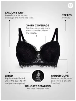 Susie Black Beauty Full Lace Padded Wired Designer Bra