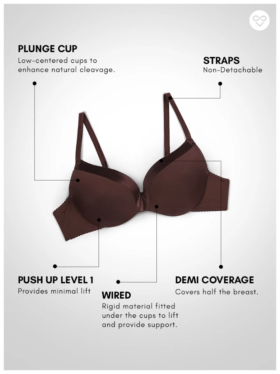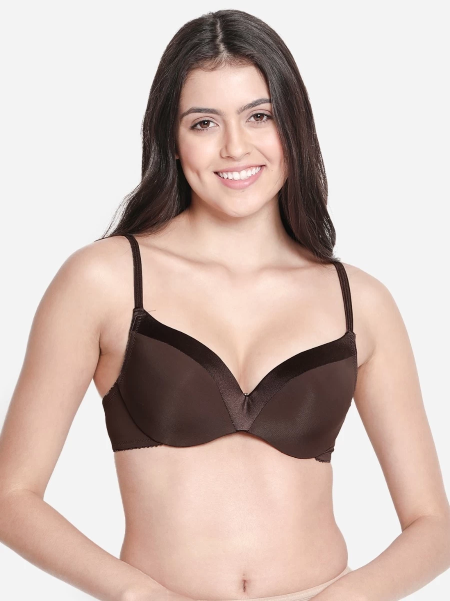Susie Chocolate Brown Wired Satin Trim Casual Pushup Bra