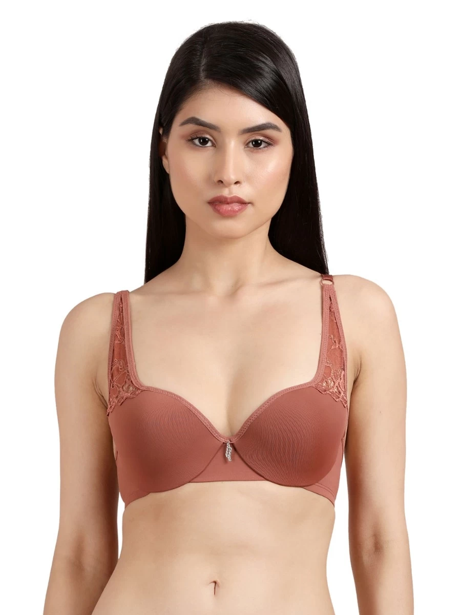 Susie Clay Brown Lace Detail Padded Wired Push Up Bra
