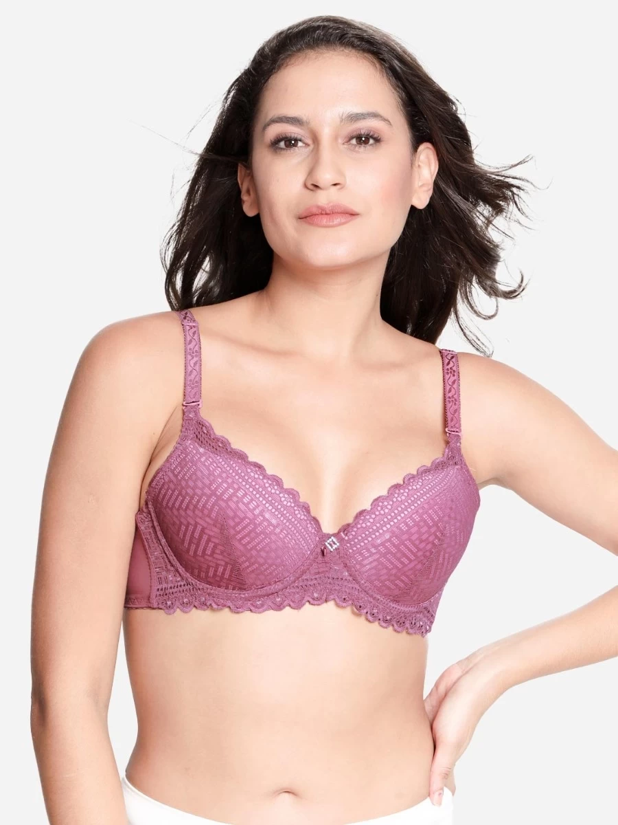 Susie Dusky Orchid Padded Wired 3/4th Coverage Full Lace Bra