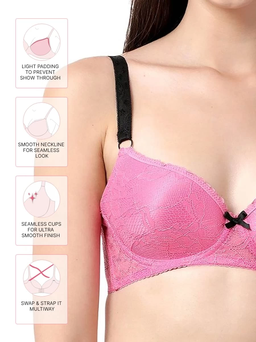 Susie Milkshake Contrast Strap Full Lace Wirefree Bra