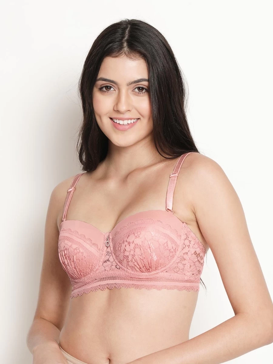 Susie Pale Pink Designer Lace Cup Padded Wired Balconette Bra