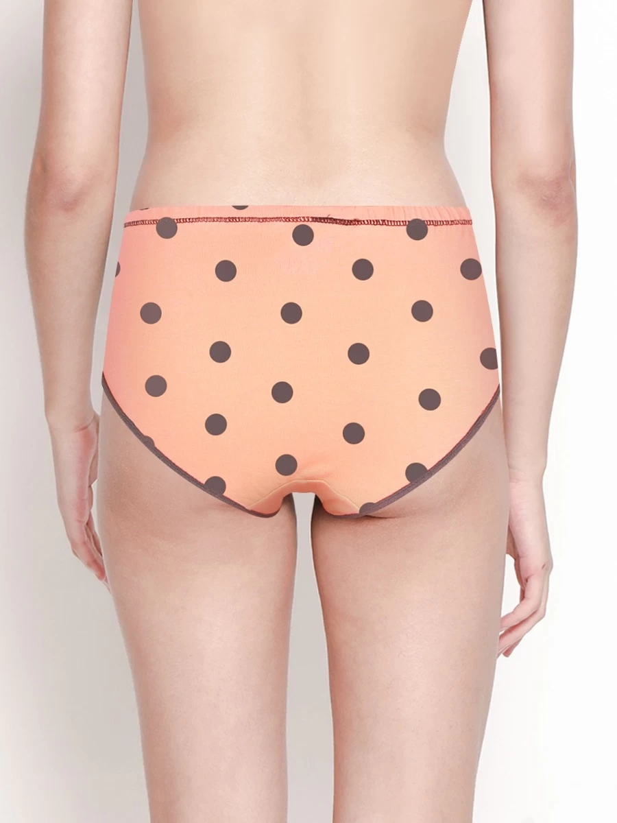 Susie Peach Grey Polka Print Full Coverage Hipster Panty
