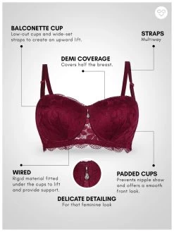 Be the first to review “Susie Wine Red Full Lace Sexy Padded Wired Balconette Bra” Cancel reply