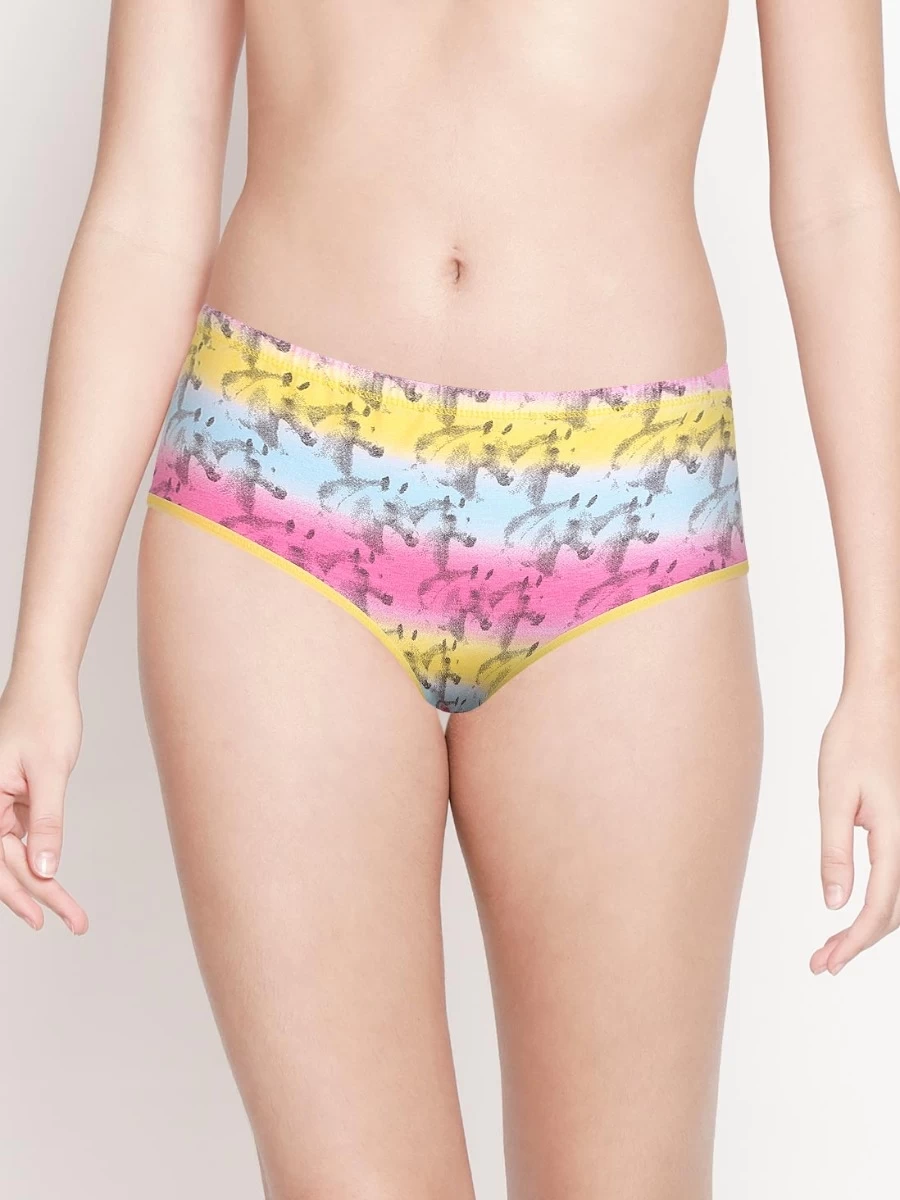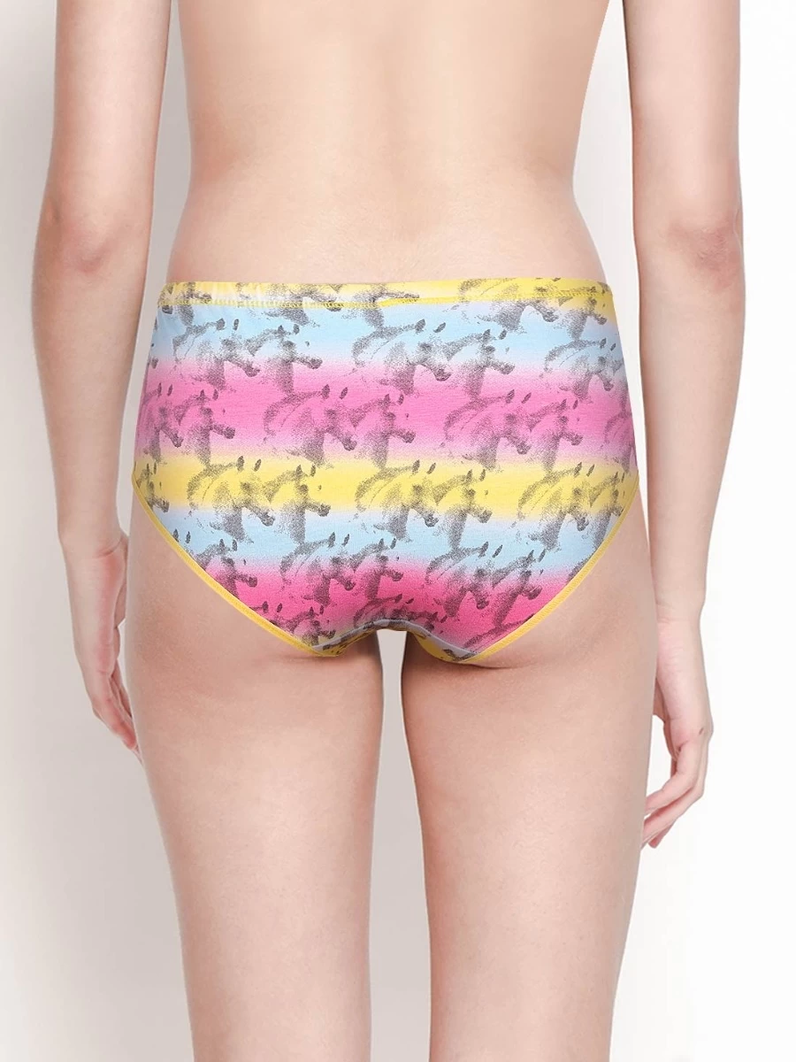 Susie Yellow Pink Horse Printed Full Coverage Hipster Panty
