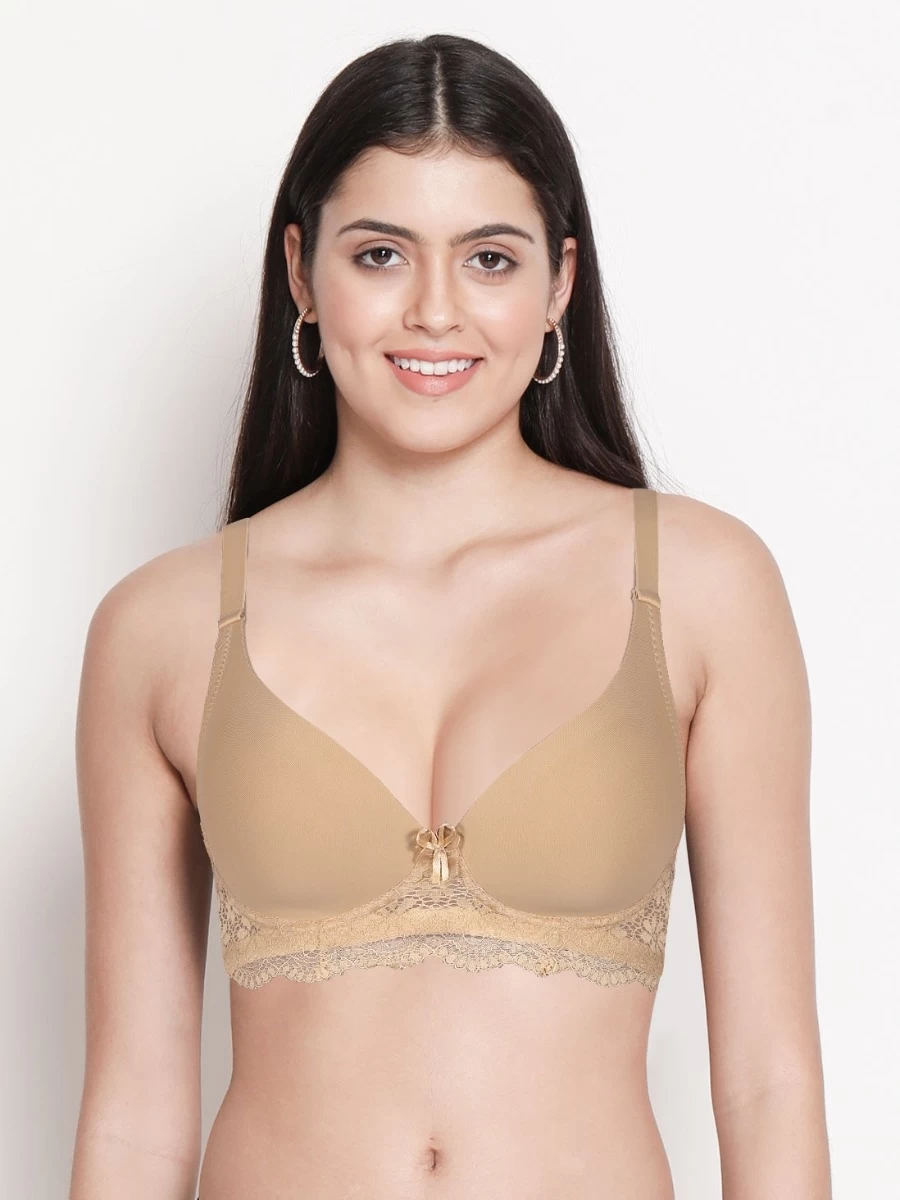 Taabu Buff Skin Padded Wirefree Bottom Lace Plunge Bra