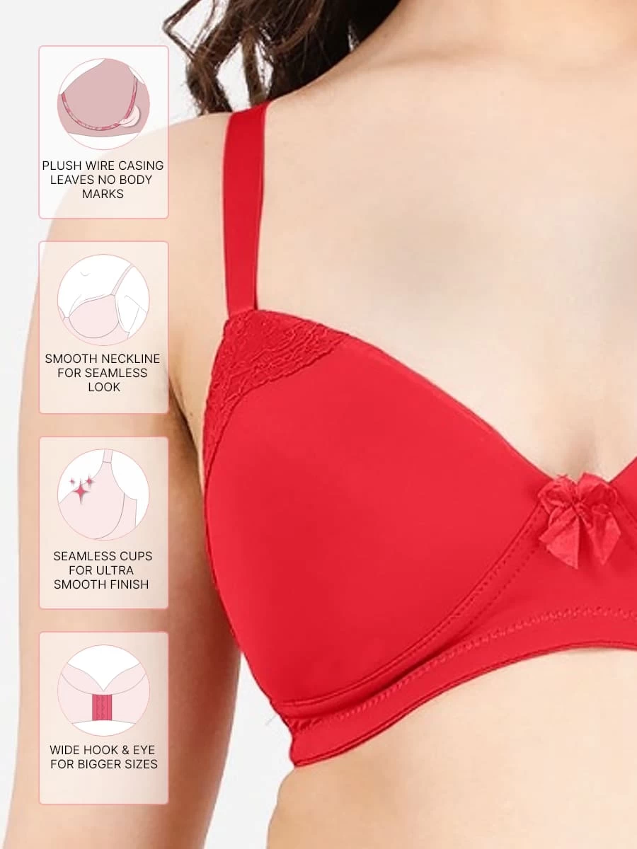 Taabu Lava Red Side Lace Padded Wirefree Tshirt Bra