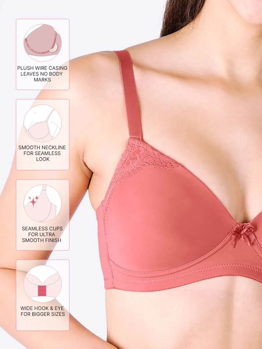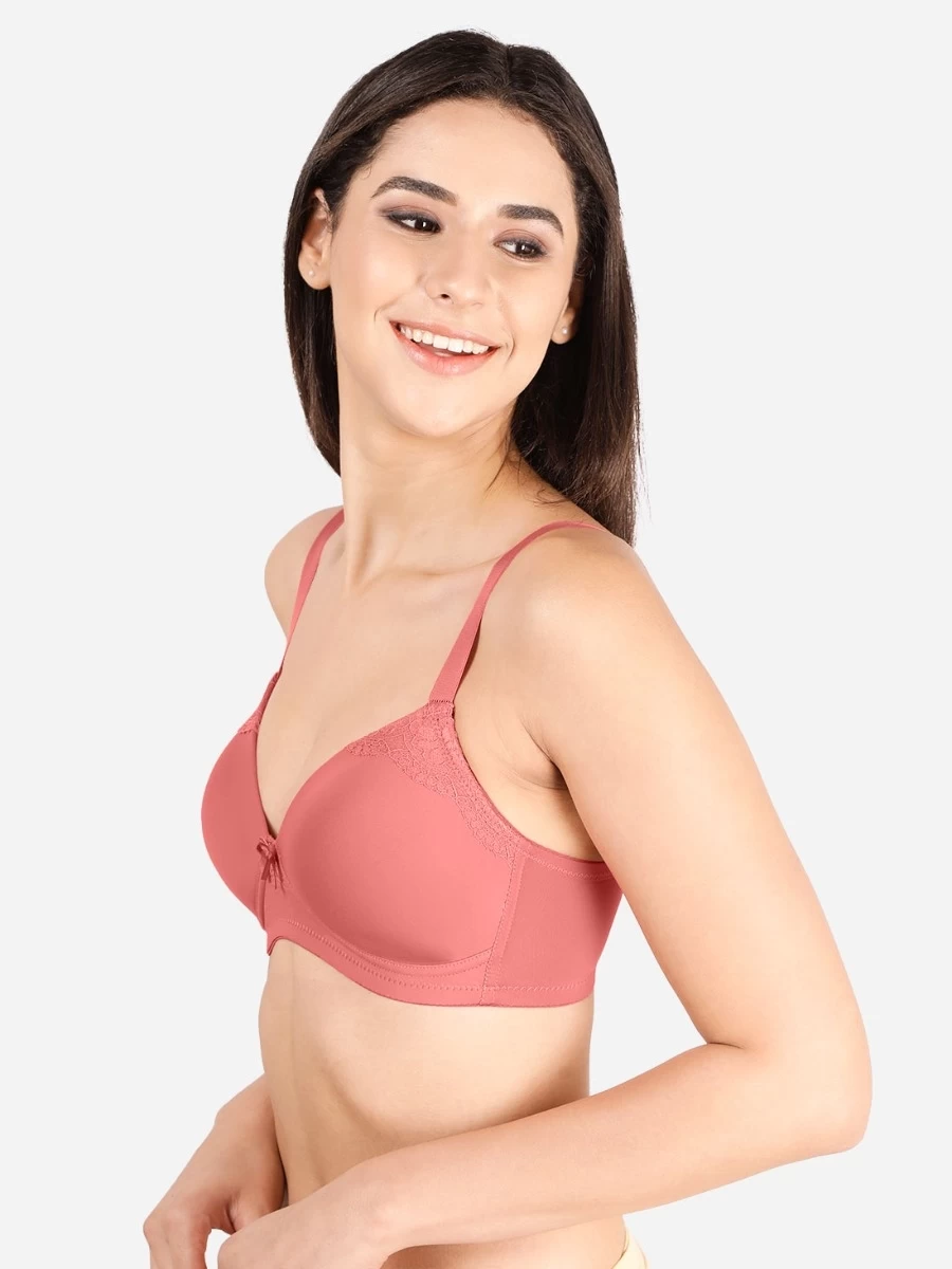 Taabu Shell Pink Side Lace Padded Wirefree Tshirt Bra